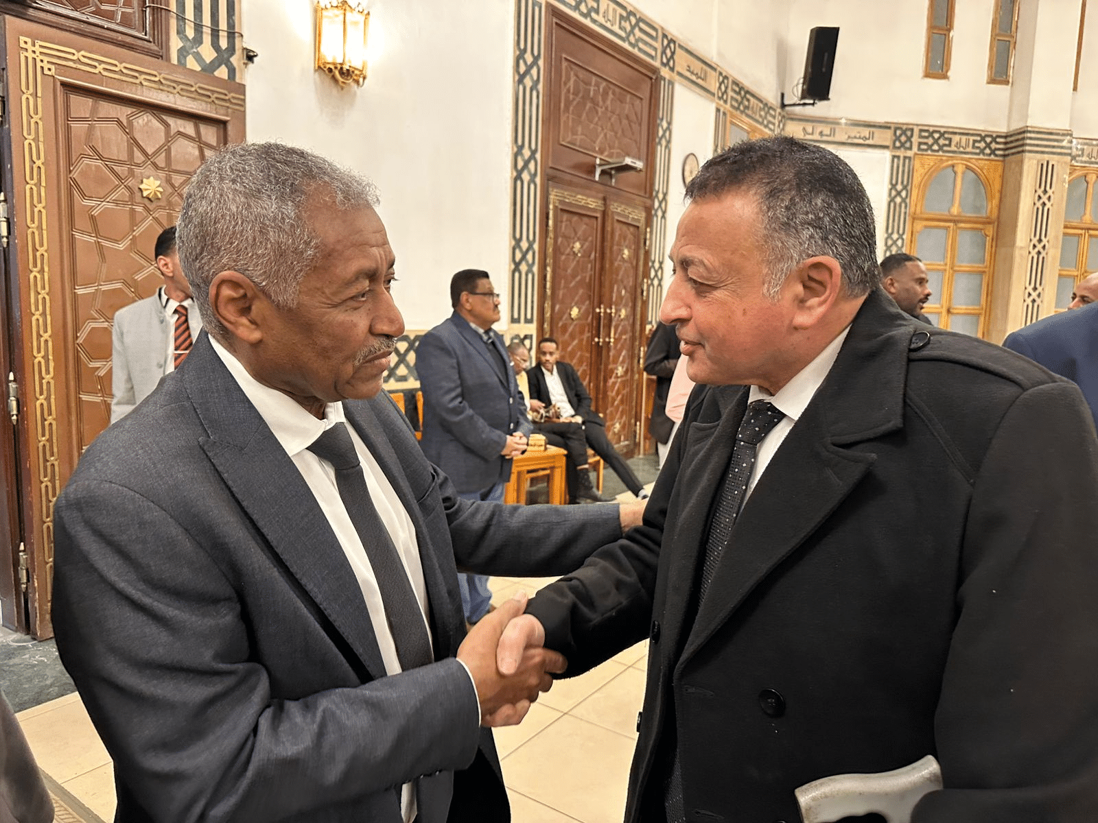 علي رأس وفد رفيع المستوي شارك السياسي البارز حسن ترك رئيس الحزب الاتحادي الديمقراطي وعضو تحالف الاحزاب المصرية بوفد رفيع المستوي ضم قيادات بالهيئة العليا وامانة الشباب وامانة الشؤون السودانية والافريقية لتقديم واجب العزاء والمواساة الي معالي السفير السوداني بالقاهرة في وفاة شقيق سيادته .