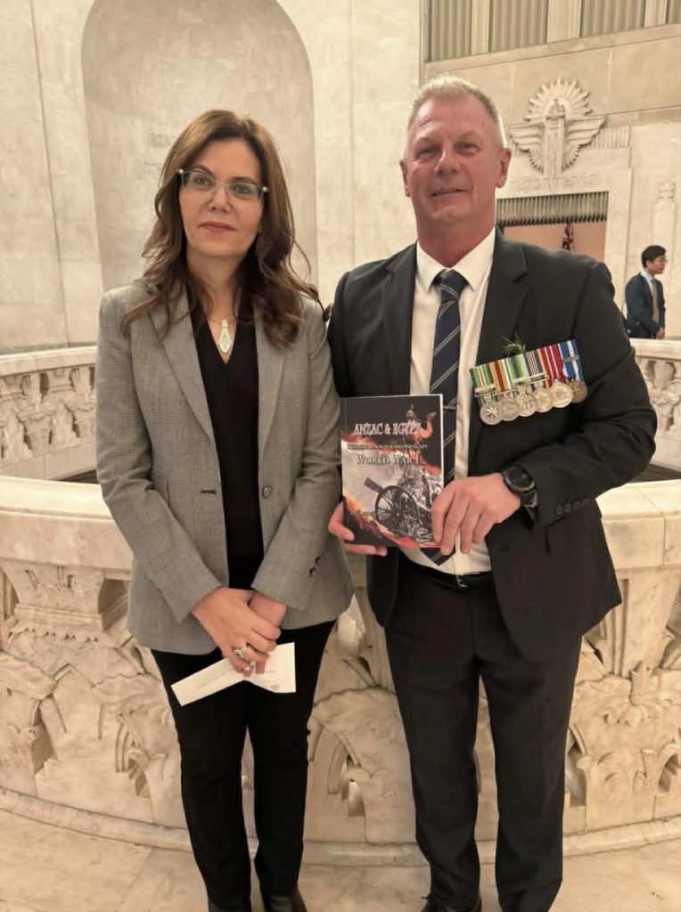 وقالت القنصل ريم زهران أن هذه المناسبة تحمل بعداً خاصاً لمصر ، نظراً لارتباطها بتاريخ مشترك خلال الحرب العالمية الأولى ، حيث انطلقت حملة جاليبولي من الأراضي المصرية ، وشهدت تلك الفترة تفاعلًا إنسانيًا بين الشعب المصري وقوات الأنزاك ، وقد قامت سعادتها بإهداء كتاب إلى متحف النصب التذكاري بولاية نيو ساوث ويلز باللغة الإنجليزية يحمل عنوان ” أستراليا ، نيوزيلندا ومصر فى الحرب العالمية الأولى ” الذي يتناول العلاقة التاريخية بين مصر وقوات الأنزاك تأكيدًا على أهمية توثيق هذا الإرث المشترك وتعزيزه للأجيال القادمة.