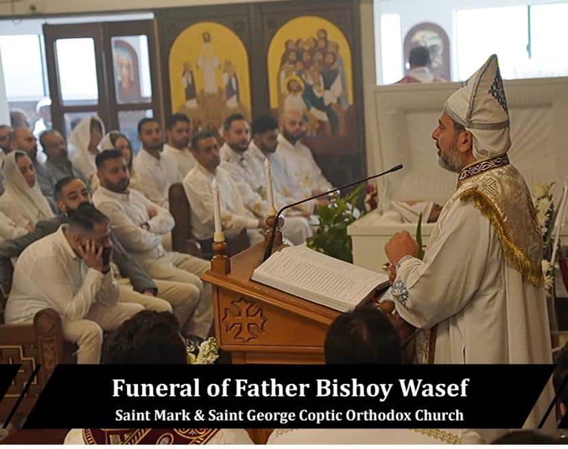 ودعت الكنيسة القبطية بأستراليا ، صباح اليوم السبت الموافق ١٤ أكتوبر ، القس بيشوي واصف ، كاهن كنيسة القديس العظيم مارمرقس والشهيد مار جرجس بشمال برسبن في ولاية كوينزلاند الإسترالية ، وقد ترأس نيافة الانبا دانييل اسقف سيدني وتوابعها ، الصلاة علي جثمانه الطاهر عقب القداس الإلهي ، بحضور لفيف من كهنة الإيبارشية ، عائلة القس بيشوي وشعب الكنيسة ، وقد سجي جثمان القس بيشوي أمام هيكل الكنيسة منذ مساء أمس الجمعة حضر صلاة العشية والتسبحه والقداس الإلهي في الوقت الذى كان فيه يلقي شعب الكنيسة نظرة الوداع الأخيرة علي أبيهم الروحي ، وعقب انتهاء صلاة الجنازة زف كهنة وشعب الكنيسة الصندوق الذي يحوي الجثمان حول المذبح والكنيسة قبل الذهاب إلى مقابر العائلة .