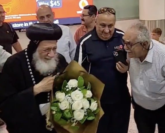 بالصور : أستقبال حافل بالورد لأسقف الخرطوم وجنوب السودان بمطار سيدني بأستراليا للقاء الجالية القبطية