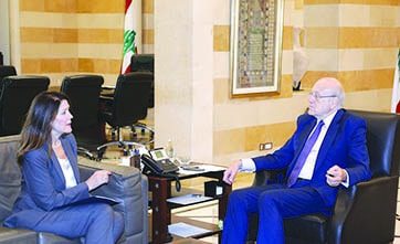 اما في لقاءاته، وفي انتظار عودة الوسيط الاميركي “ترسيميا” اموس هوكشتاين، فاستقبل الرئيس ميقاتي في السراي سفيرة الولايات المتحدة الاميركية دوروثي شيا، ثم سفير بريطانيا في لبنان هاميش كاول وتم خلال اللقاء عرض الأوضاع العامة والعلاقات الثنائية بين البلدين.