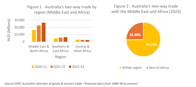 Australia’s trade with the MENA region, while only 2.1% of its total global trade in 2023, has shown