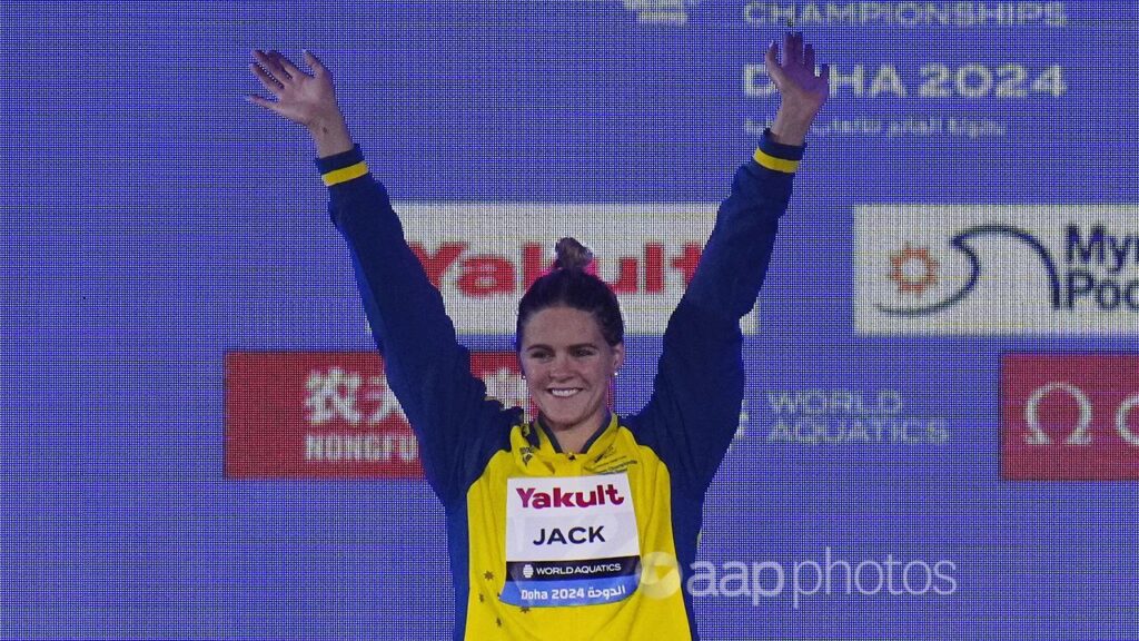 Shayna Jack has been left celebrating her second individual world championship medal of a workaholic week, splashing to bronze in the blue riband 100m freestyle in Doha.