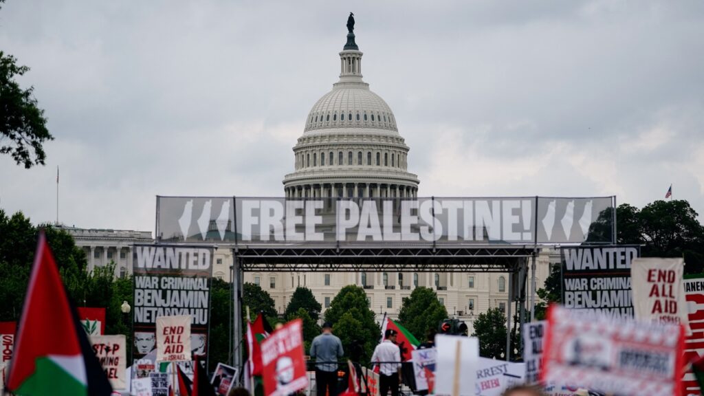 Outside Capitol Hill and across downtown Washington DC, thousands of pro-Palestinian and anti-war activists from all over the country are expected to raise their ire against the Israeli war on Gaza as a whole, with their centre of attention being Netanyahu, who they accuse of leading a genocide on the Palestinian people in Gaza.