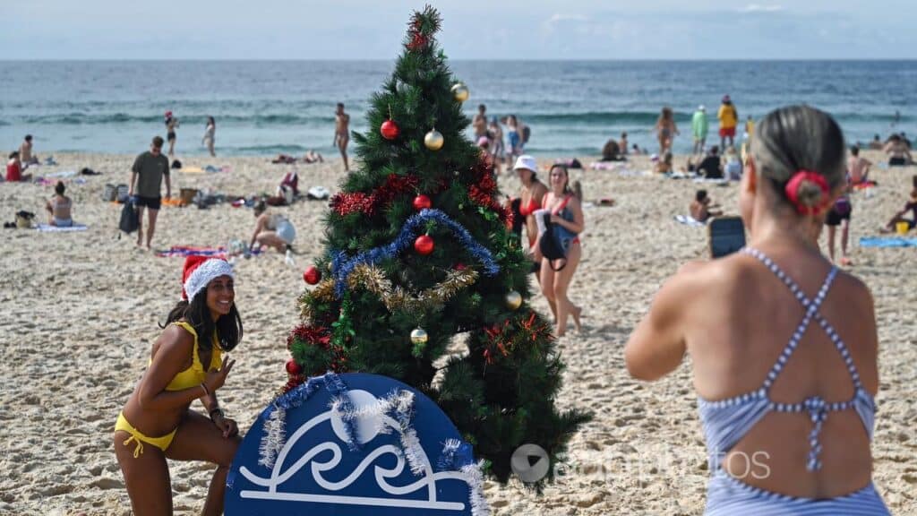 Many Australians made the most of blue skies for a classic beach Christmas despite widespread and severe thunderstorm warnings.