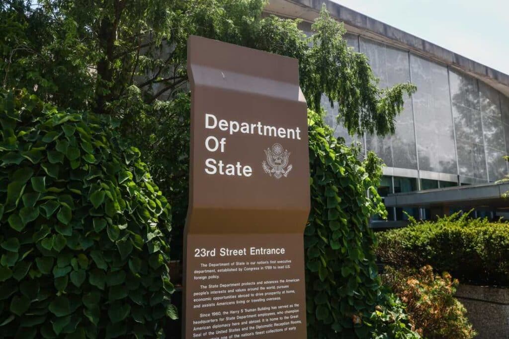 The U.S. Department of State sign in Washington, D.C. Beata Zawrzel/NurPhoto via Getty Images