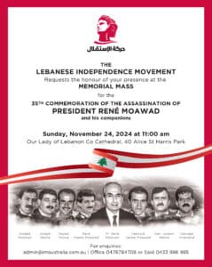 The Lebanese Independence Movement Melbourne held the 34th Annual Memorial Mass to pay tribute and commemorate the Late Martyred President
